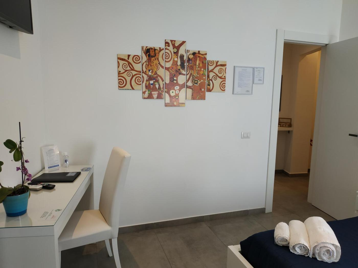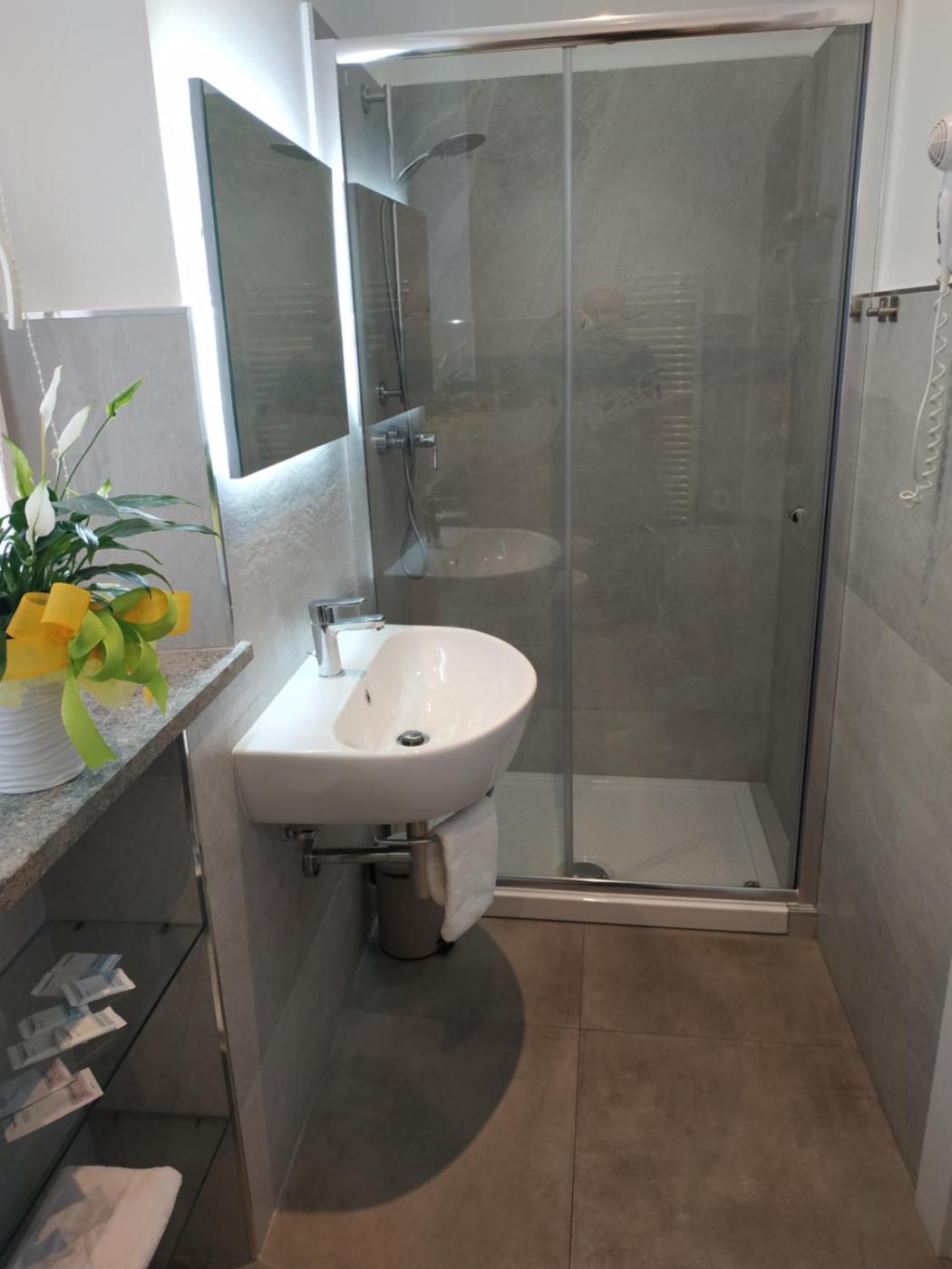 Camera Quadrupla con Bagno Privato. Featuring free toiletries, this quadruple room includes a private bathroom with a shower, a bidet and a hairdryer. The spacious air-conditioned quadruple room features a flat-screen TV with streaming services, soundproof walls, a minibar, a tea and coffee maker as well as city views. The unit has 2 beds.
